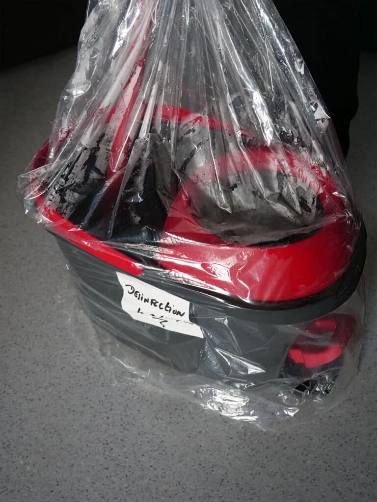 Bio-nettoyage certifié : Traitement et élimination des fluides corporels, projections sanguines et matières biologiques selon des protocoles de sécurité homologués.